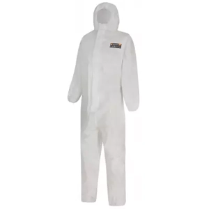 Lightweight spun-bonded polypropylene material providing protection against limited liquid splashes (Type 6) and hazardous dusts (Type 5). Breathable, and antistatic. Elasticated hood, waist, wrist and ankles.