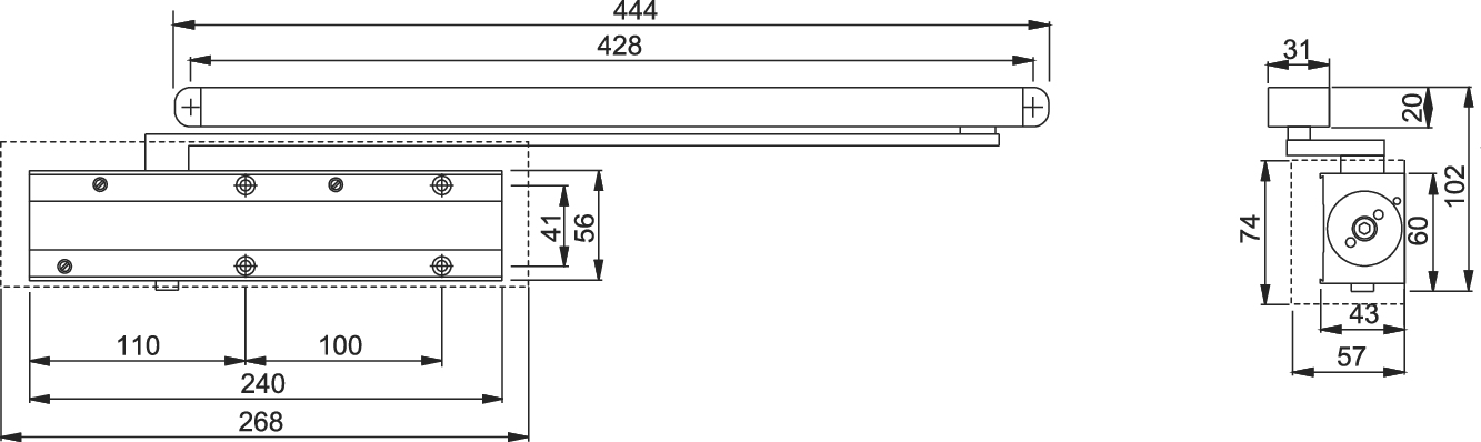 - Arm Application: Door Mount Push, Transom Mount Pull